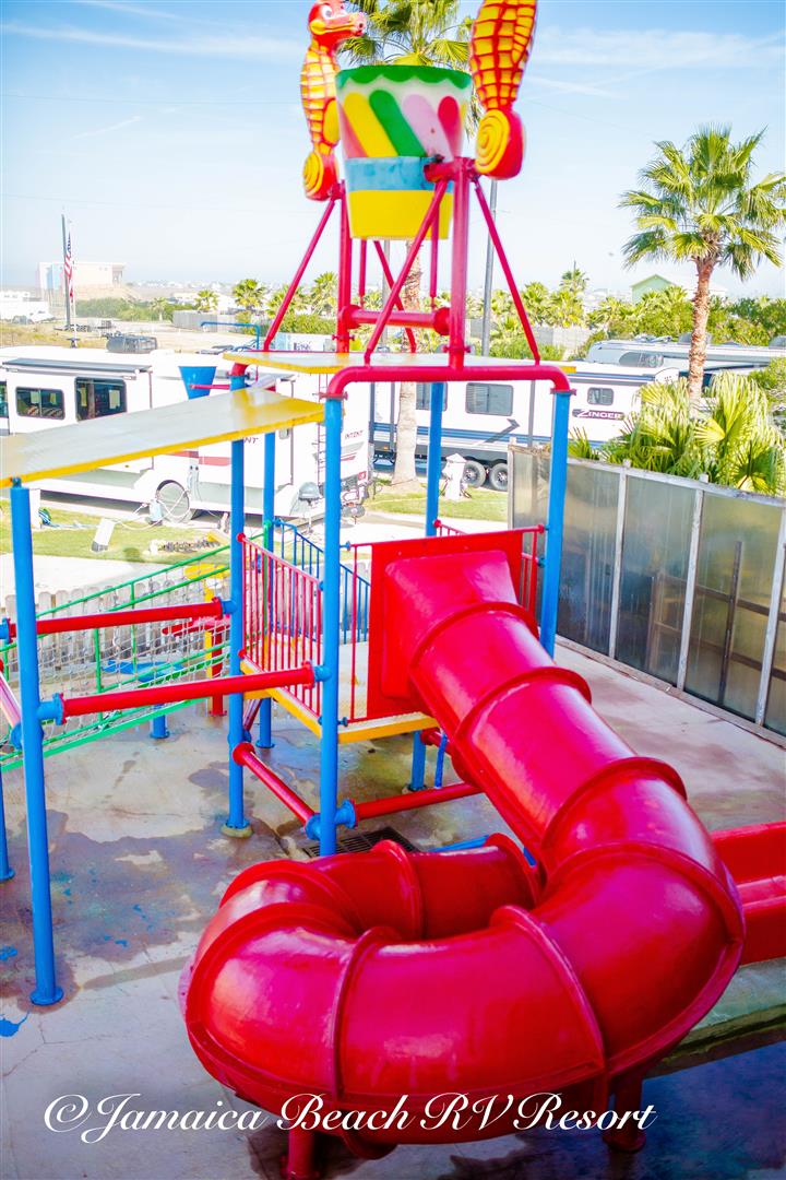 Jamaica Beach RV Park is at a great location, far enough for the populated areas, but close enough to make it a short trip.The public beach was just a short walk away, and that’s really what we wanted to visit- so I’m pleased with that. The ability to walk to the bay on the other side of the park was nice, also. Made for very pretty sunsets.The park was clean, we had pleasant interactions with staff, and were able to have full access to all provided amenities. The splash pad was great, and my daughter had fun. The indoor pool was nice for less than stellar weather days. The putt putt course was entertaining. Most of the outdoor amenities just need updates. I know that’s hard to do simultaneously, and I’m sure the staff members are working hard to accommodate these updates. I just don’t think it was worth the price for additional family members (family of 4) to use these facilities.It wasn’t necessarily a bad visit.I’m just not sure it was up to the standard it was advertised as on their website. Especially for a RV Resort that books up so fast, and far in advance.